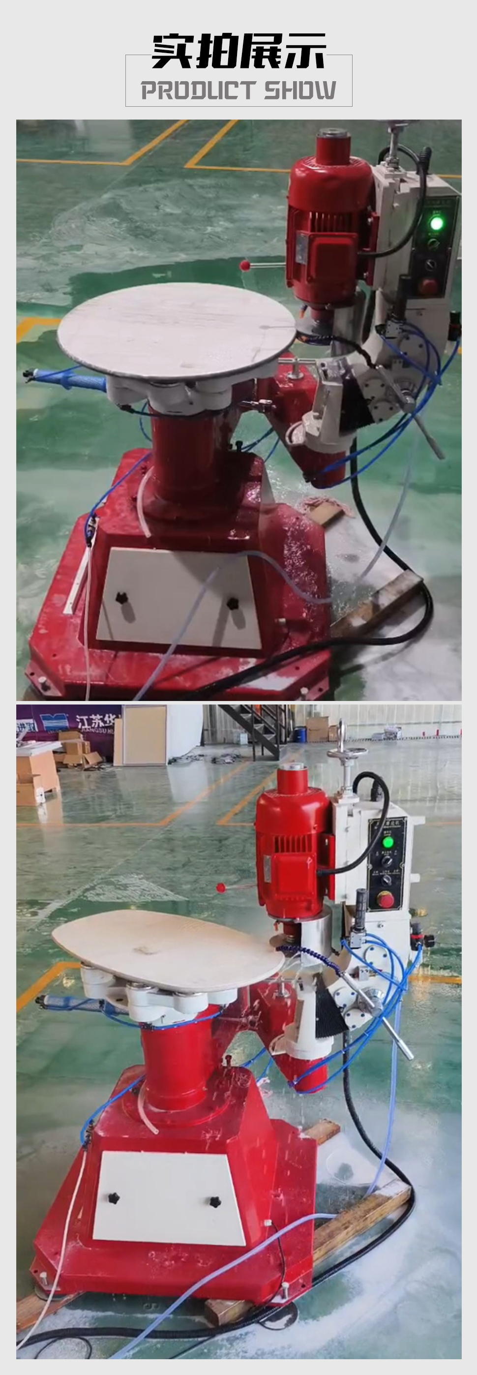 HLCM-1120 shape edging and beveling machine specializing in luxury round table & irregular countertops. With satellite rotary speed control + constant-pressure system, it masters curved slab edge processing of marble, granite, sintered stone, and glass. Whether you are edging/beveling complicated shapes, circles, ovals or matching a bevel on your arched pieces, the HLCM-1120 is your simple low cost solution.